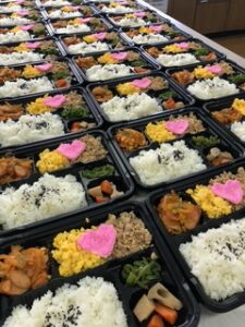 ボランティアさんのアイデアで桜でんぶをハートマークにして